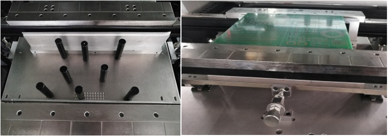 PCB支撐系統(tǒng)具有多種支撐功能,配以磁性頂針和邊支撐塊,可選配真空吸板,使PCB支撐更平穩(wěn)。PCB夾持系統(tǒng)可實(shí)現(xiàn)側(cè)夾,上壓和混合夾持方式,滿足不同厚度PCB夾持要求,且裝夾快速,方便。切換不同夾持方式,只需軟件設(shè)置即可。