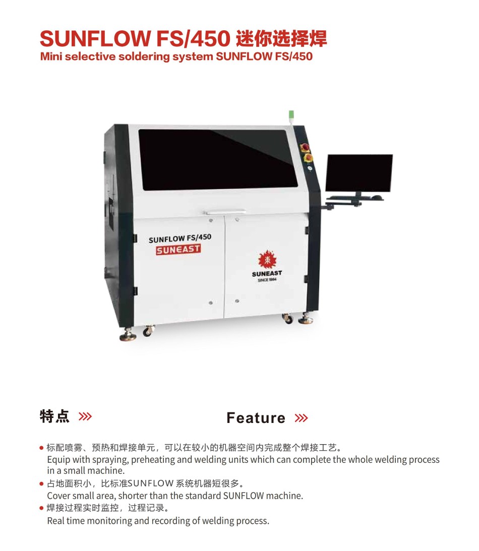 小型選擇性波峰焊SUNFLOW FS/450產(chǎn)品特點: