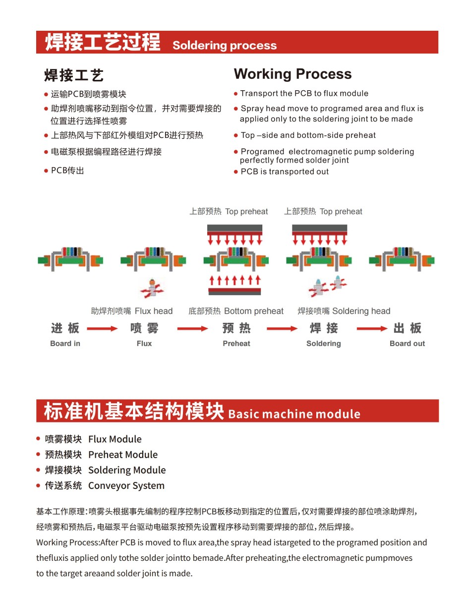 上部熱風與下部紅外模組對PCB進行預熱電磁泵根據編程路徑進行焊接