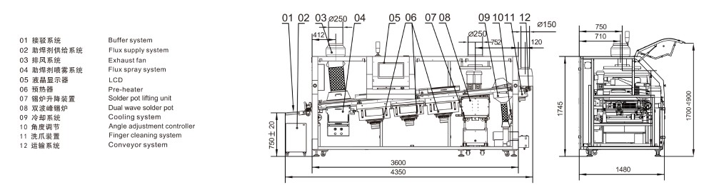 ●錫爐系統(tǒng),內(nèi)膽采用特殊材料,內(nèi)表面防腐蝕處理。(新型噴口固定方式,便于裝卸;自動(dòng)導(dǎo)流裝置,便于收集錫渣,波峰形狀可調(diào)節(jié))錫爐溫度控制精度±2℃,錫爐進(jìn)出、升降電動(dòng)手動(dòng)均可,操作方便。