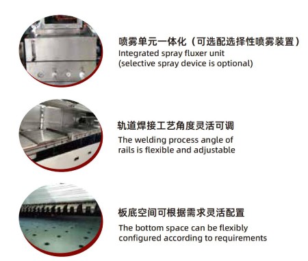 預熱系統:采用抽屜式模組式節能設計,紅外、熱風任意組合,溫度控制采用PID方式,預熱與錫爐過渡段配置紅外熱補償,有效減少掉溫;