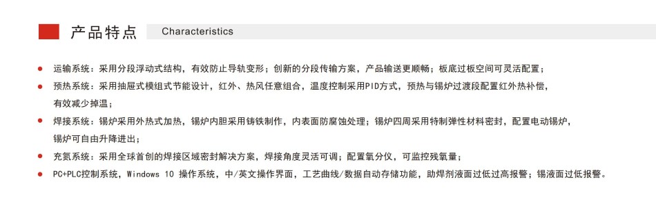 PC+PLC控制系統:Windows10操作系統,中/英文操作界面,工藝曲線/數據自動存儲功能,助焊劑液面過低過高報警;錫液面過低報警。